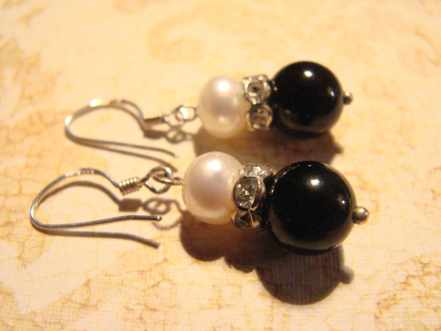 Marked .925 Findings and Rhinestone Rondelles are silver. Real pearl paired with Black Glass Beads.