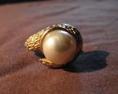 Heavy Gold tone with large Faux pearl cocktail ring.