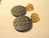 Gold Plate Matte finish with Black Resin DIsc's accented with Gold Plated Dots. Very Chic.