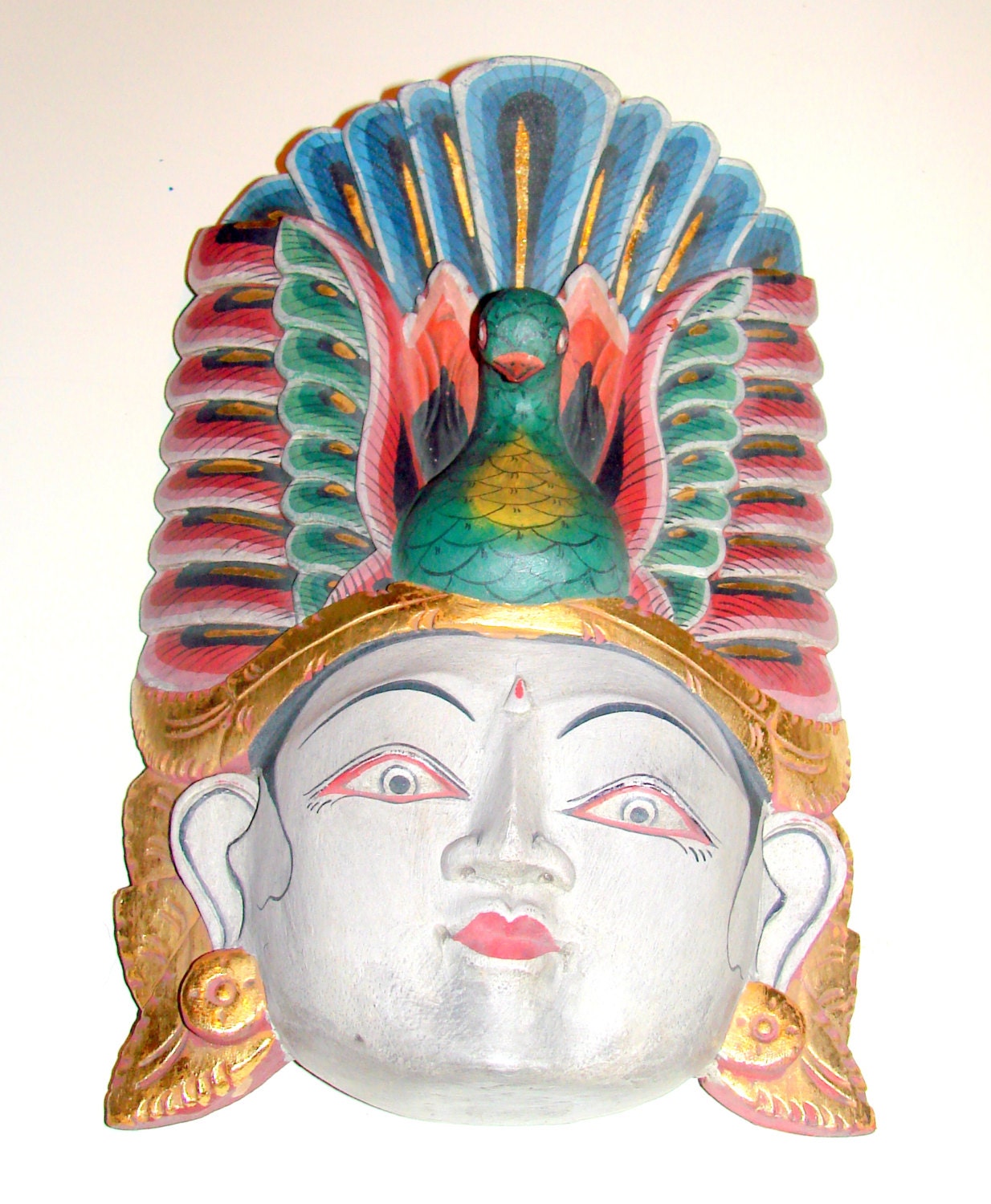 Hindu Phoenix Mask / Carved Painted India Mask / Home Decor