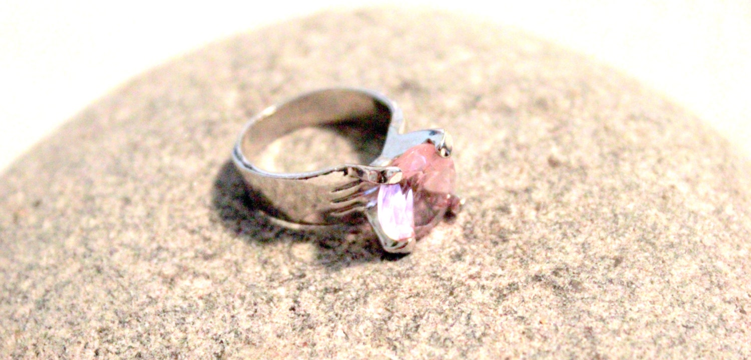 Fun Womans Costume Ring Large Pink Solitaire Silver Ring Size 9