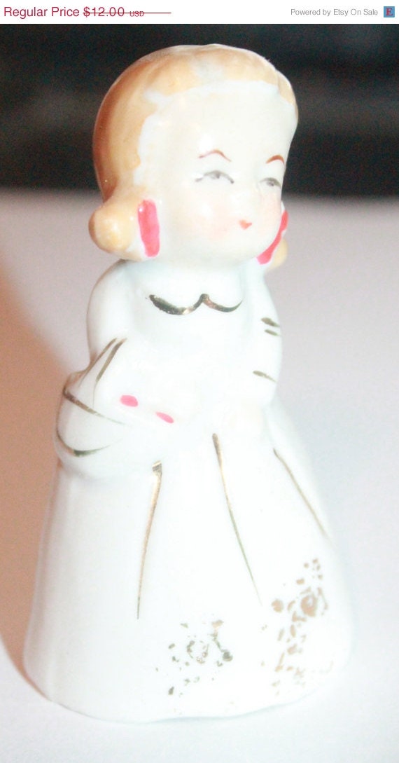 Black Friday SALE 25% OFF Vintage Home Decor / Porcelain Girl Bell / Japan Made Decor / Mid Century