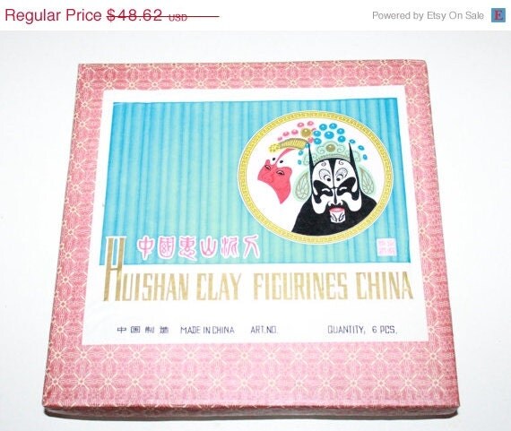 50% off SUPER SALE Huishan Drama Mask Set of 6 / Chinese Clay Figurenes / Home Decor