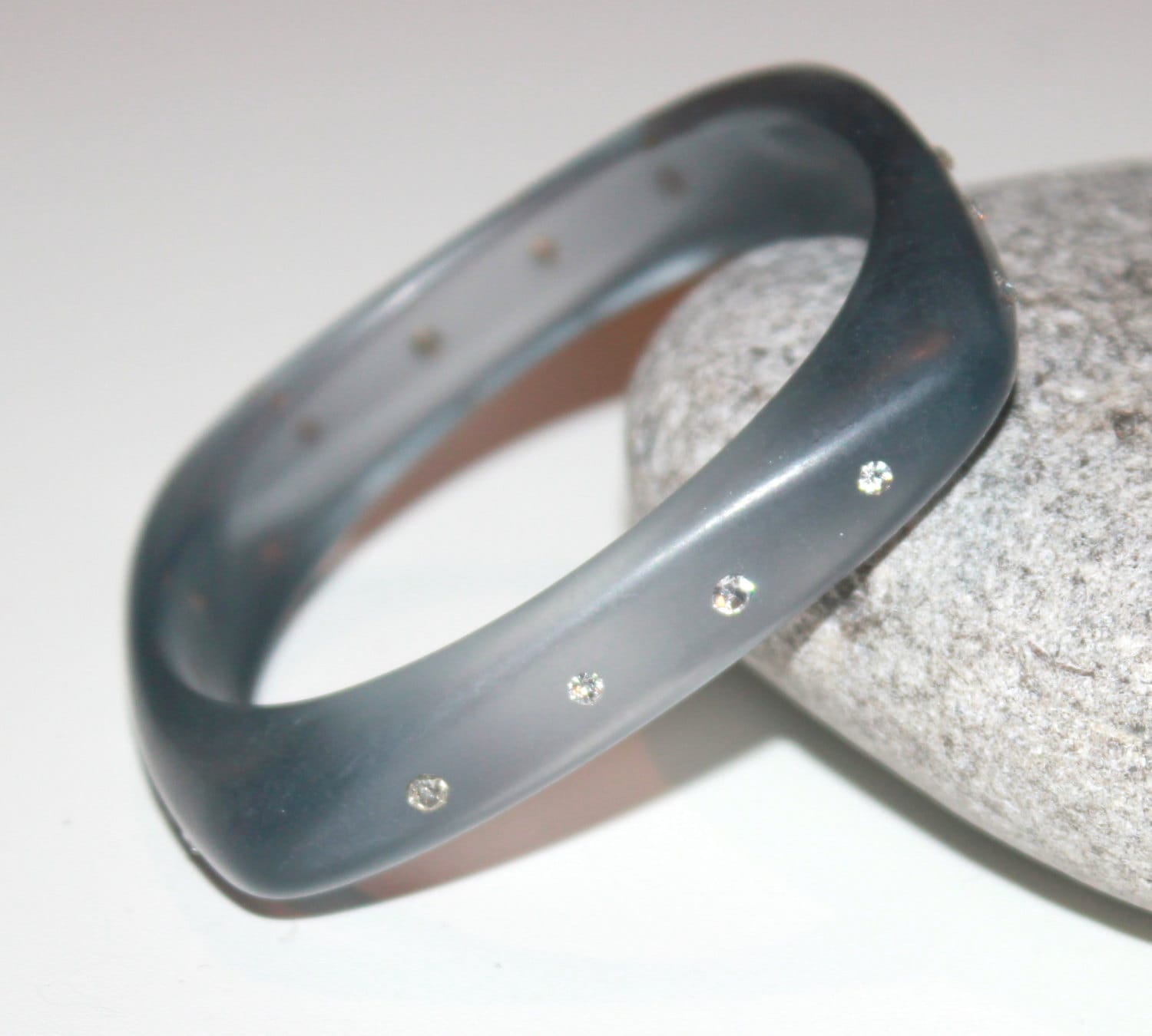 Vintage Costume Jewelry / Grey Lucite and Rhinestone Square Bangle