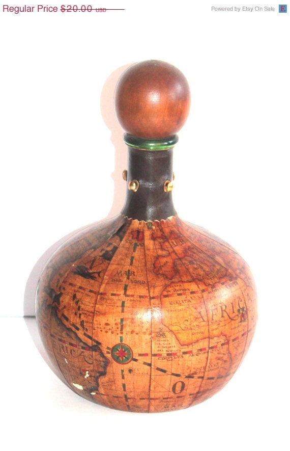 48 Hour Blitz SALE Vintage Globe Glass Decanter, Earth, World, Leather, Antique Alchemy