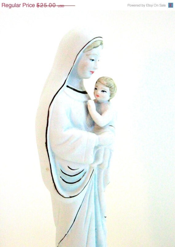 Black Friday SALE 25% OFF 11'' Mary and Child Ceramic Vintage Statue