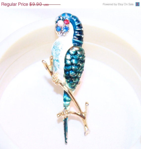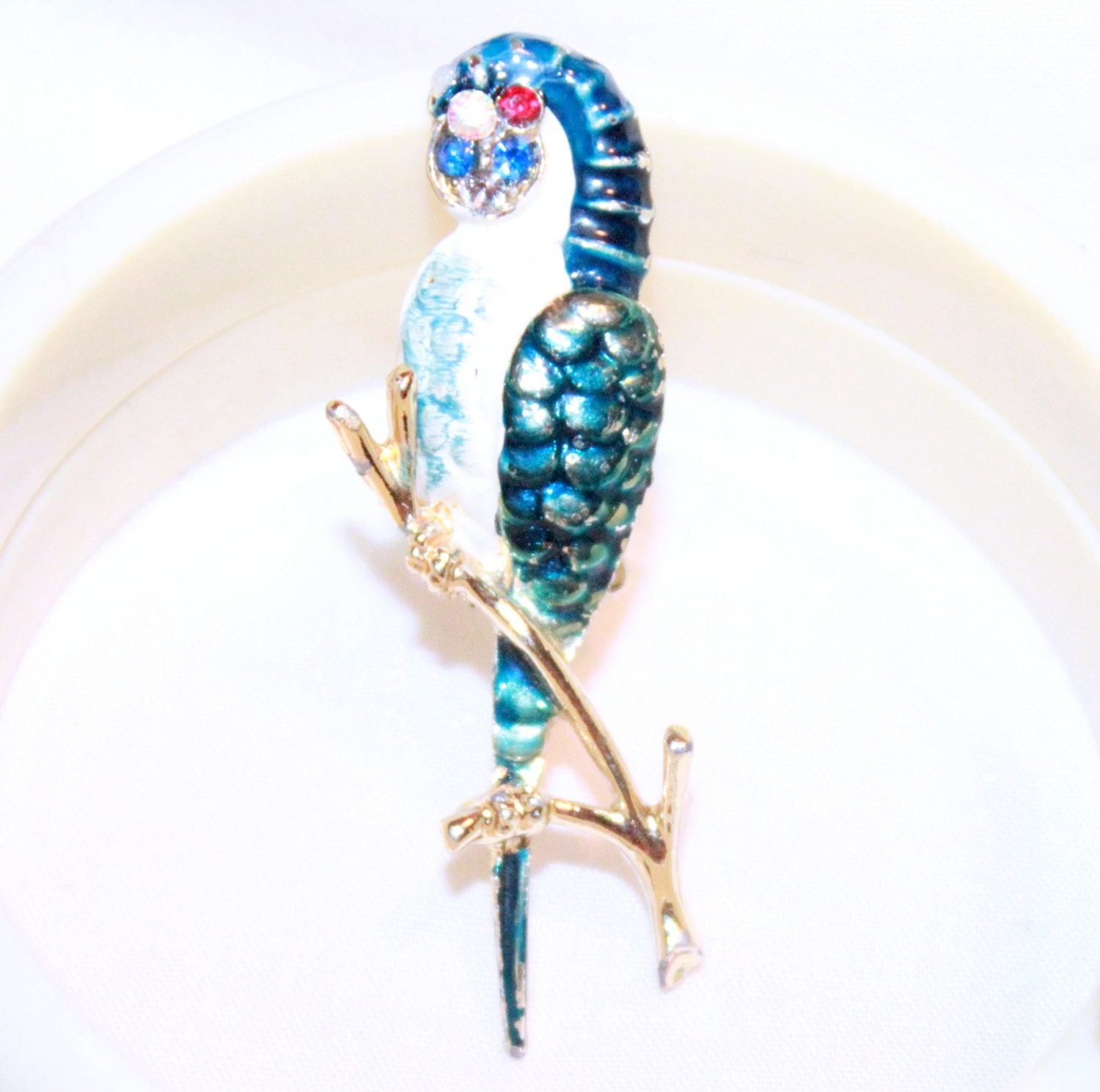 24 Hour SALE 30% OFF Womans Vintage Figural Brooch / Enamel and Pave Set Rhinestone Parrot / Mid Century Brooch / Bird Jewellery